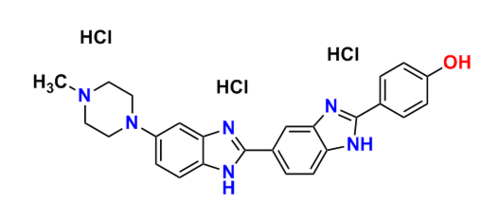 Hoechst 33258細胞核染料是一系列熒光染料,用于在熒光顯微鏡中標記DNA。它們也常用于可視化細胞核和線粒體的染色??蒲兄型ǔJ褂玫膬煞N分別為:Hoechst 33258和Hoechst 33342。 兩種染料都被約350nm的紫外光激發(fā),并且都發(fā)射藍/青色熒光,發(fā)射最大值為461nm。 Hoechst染色劑可以與活細胞或固定細胞一起使用,并且通常用作另一種核酸染色劑DAPI的替代物。 它們之間的關(guān)鍵區(qū)別在于Hoechst 33342的額外乙基使其更具親脂性,因此更容易穿過完整的細胞膜。在某些應用中,Hoechst 33258的滲透性明顯低于Hoeschst 33342。這些染料也可用于通過繪制標準的發(fā)射 - 含量曲線來檢測樣品的DNA的含量。